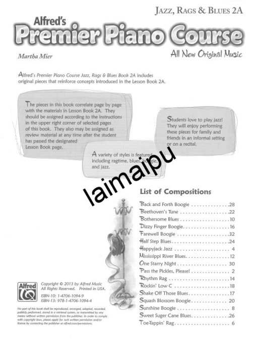 阿尔弗雷德初步钢琴教程 – 爵士、雷格、布鲁斯 (Premier Piano Course Jazz, Rags & Blues, Book)