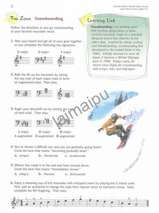 阿尔弗雷德初步钢琴教程 – 理论 6 (Alfred’s Premier Piano Course Theory, Book 6)