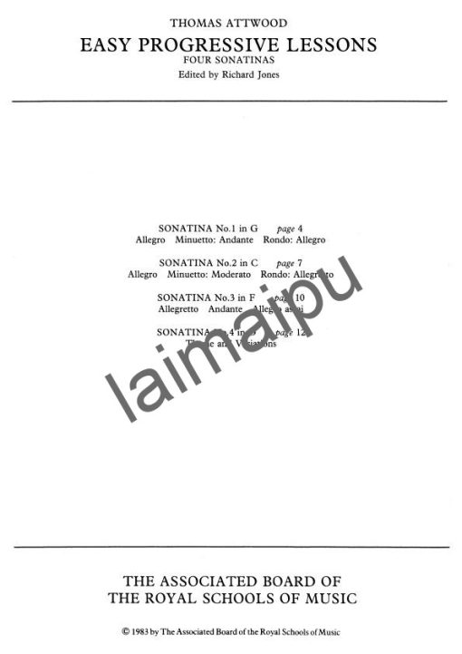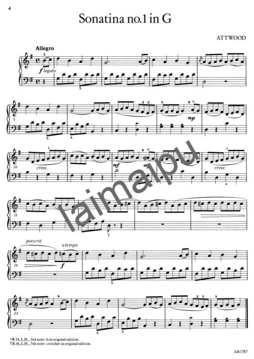 🎞 阿特伍德: 简单进级课程–四首小奏鸣曲 (Thomas Attwood: Easy Progressive Lessons)