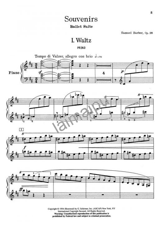 7级、8级、四手联弹、钢琴组曲《纪念品》是巴伯的代表作之一,创作于1952年。