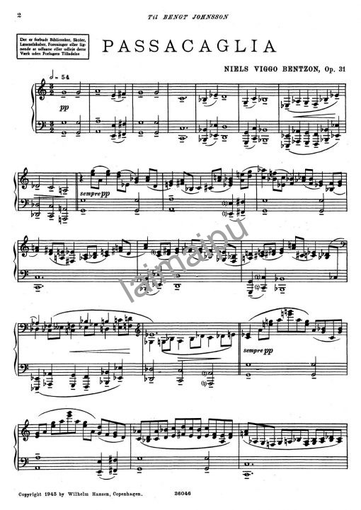本岑: 帕萨卡里亚舞曲,作品31 (Bentzon: Passacaglia For Piano Op. 31)