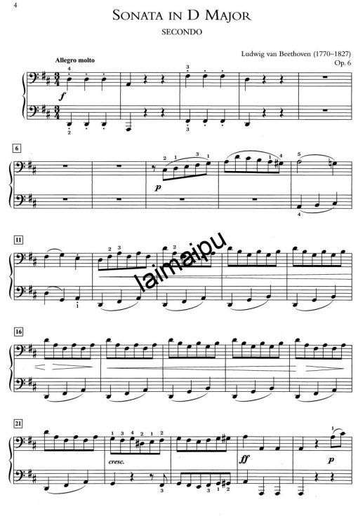 🔊4️⃣ 贝多芬: D大调奏鸣曲,作品 6 (Beethoven: Sonata in D Major, Op. 6)