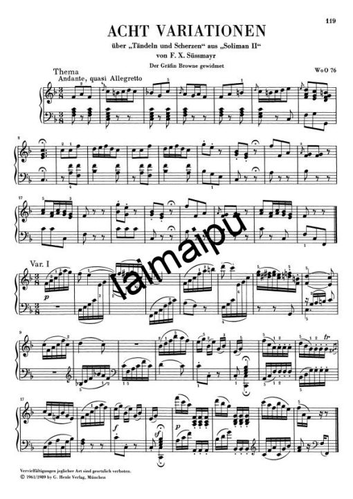 8 Piano Variations on “Tändeln und scherzen” by Süßmayr WoO 76
