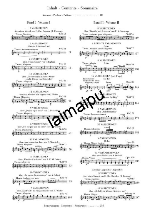 这本以贝多芬完整钢琴变奏曲为特色的Henle Urtext版第二卷,包含了他的 “大师级变奏曲”。而他早期的两首变奏曲都没有作品编号就出版了,这两首变奏曲之后是oppo. 34和35–贝多芬的作品。34和35–贝多芬在给出版社Breitkopf & Härtel的信中提到的作品,他认为这些作品是 “以一种全新的、不同的方式制作出来的”。这一类作品中最重要的作品是c小调32变奏曲WoO 80和著名的迪亚贝利变奏曲op.120,这两首作品算得上是有史以来最重要的变奏曲循环。