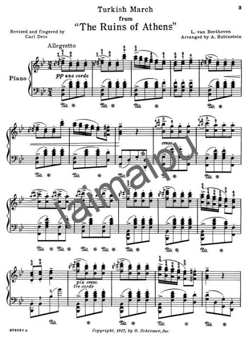 安东·鲁宾斯坦改编贝多芬”雅典的废墟”中的土耳其进行曲为钢琴独奏版。