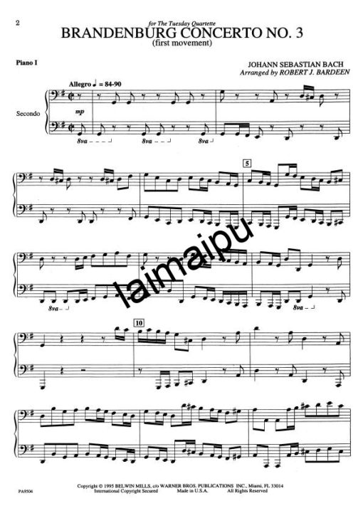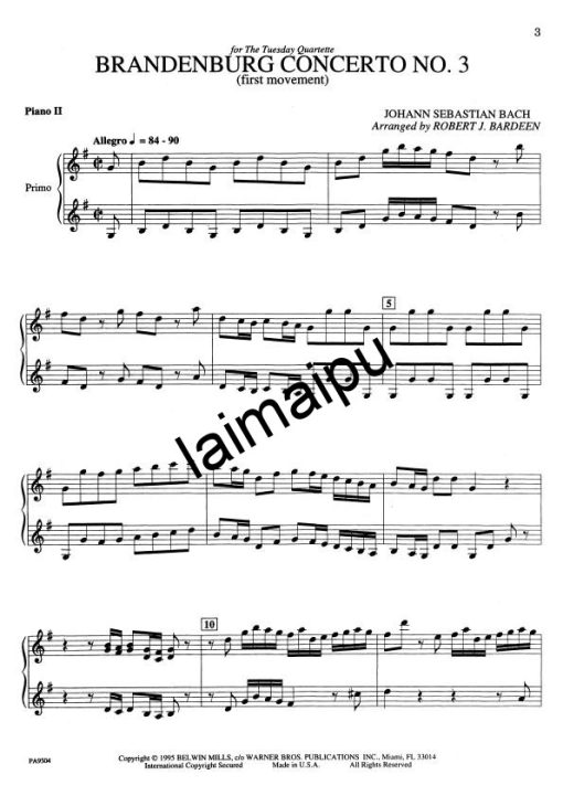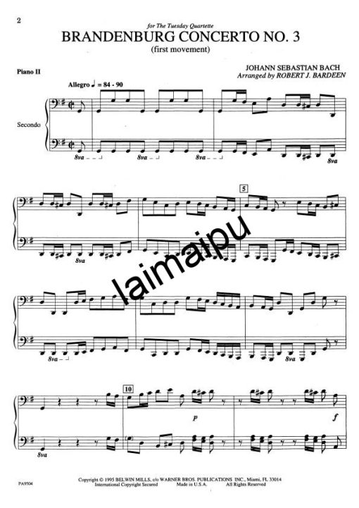 钢琴四重奏的曲目在这首惊艳的巴丁编曲下变得更加丰富。当四位钢琴家将各部分编织在一起时,其味道、性格和色彩都会体现出来。这部作品在技术上并不比创意曲更难,会让挑剔的演奏家和观众满意。