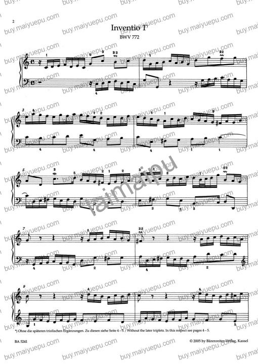 巴赫: 二声部创意曲与三声部辛服尼亚 (骑熊士版) (J. S. Bach: Inventions and Sinfonias BWV 772-801)