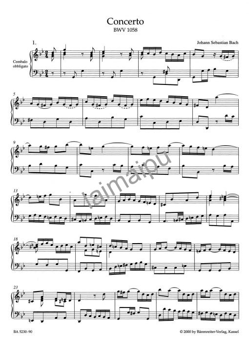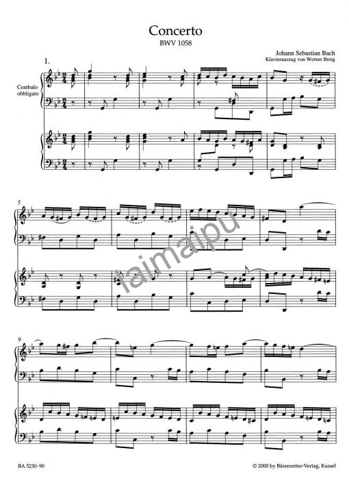 所有八首协奏曲[BA 5224-BA 5231]都是以钢琴缩编的形式呈现,并配有独立的乐队部分。钢琴缩编版不仅适合在大键琴上进行指挥,还可以在两台大键琴上演奏这些作品。巴赫的所有大键琴独奏协奏曲现在都可以通过新巴赫版的 “原典版 “获得。