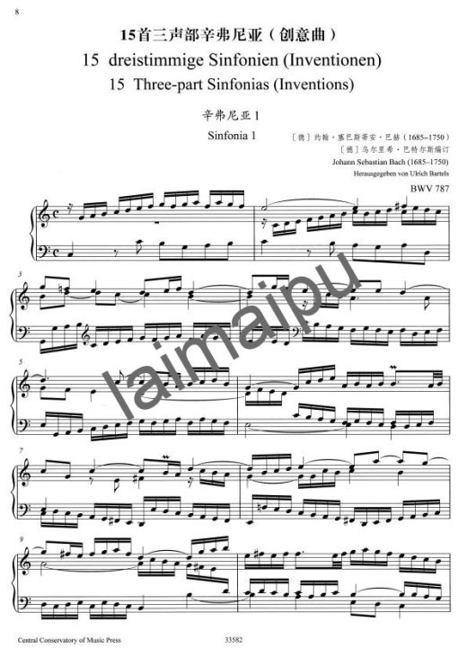 👍 巴赫 15 首三声部辛弗尼亚 (三声部创意曲)