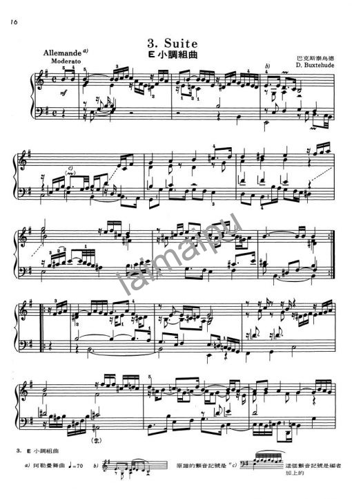 此外,在第一册雖然未能加入巴洛克時代最高巨匠巴赫的作品,但在這本第二册中,則取用他的一首名曲「A小調賦格曲」。