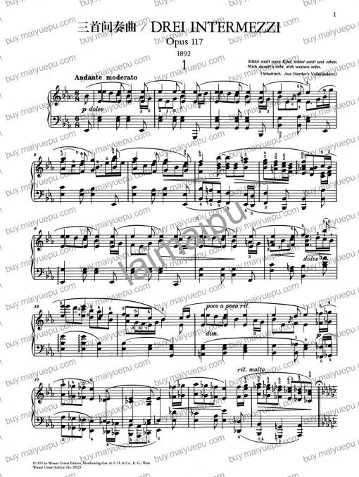 Brahms Three Intermezzi Op.117 ๅๆๅงๆฏ ไธ้ฆ้ดๅฅๆฒ Op.117