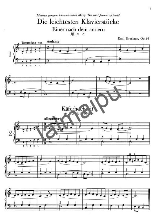 🔉 布雷斯劳尔: 钢琴小品集,作品 46 (Breslaur: Die Leichtesten Klavierstücke Op. 46)