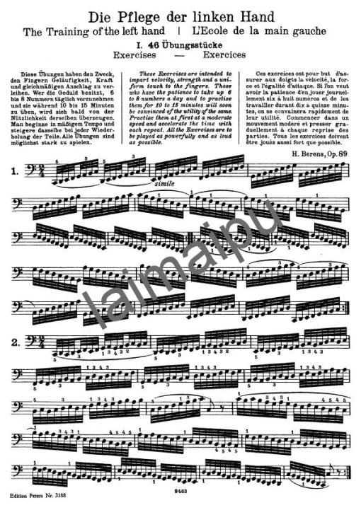 贝伦斯: 左手练习曲, 作品 89 (Berens: Training the Left Hand Op. 89)