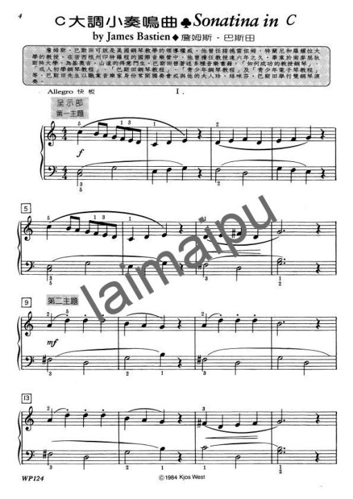 克莱曼蒂: 小奏鸣曲 Op. 36-1 - Bastien: Sonatina in Classic style