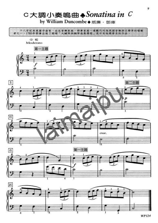 巴斯蒂安 (巴斯田): C 大调小奏鸣曲 - Duncombe: Sonatina in C
