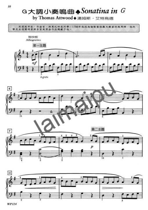 邓库: C 大调小奏鸣曲 - Attwood: Sonatina in G