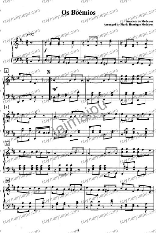 第一册包含12首肖罗(Choro)钢琴曲,包含六首作者原创各式曲风,与六首改编自巴西名家如Pat pio Silva, Joaquim Callado, Anacleto de Medeiros 与 Satiro Bilhar等人之作品。