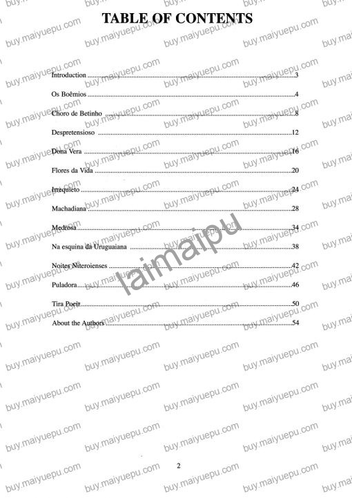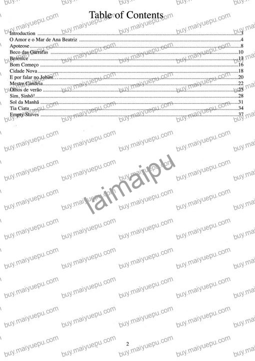 第二册则包含六首森巴与六首巴萨诺瓦作品。