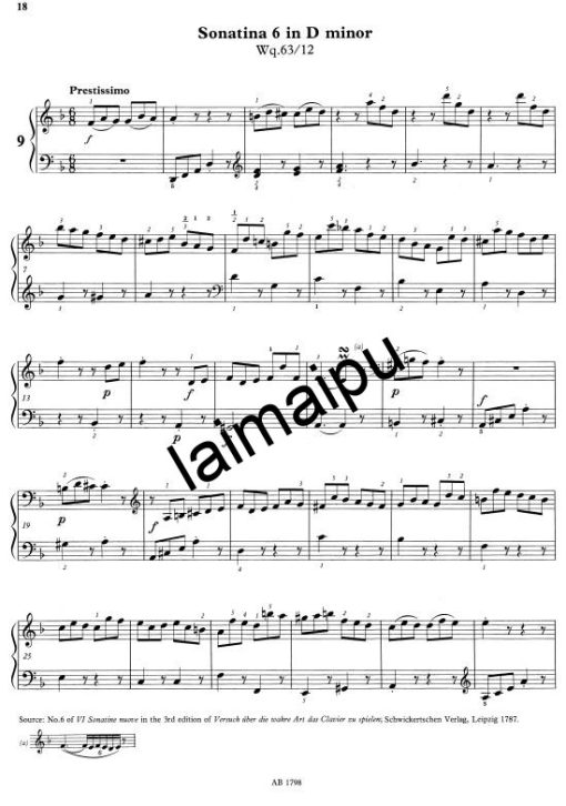 - Sonatina 6 in D minor, Wq. 63/12