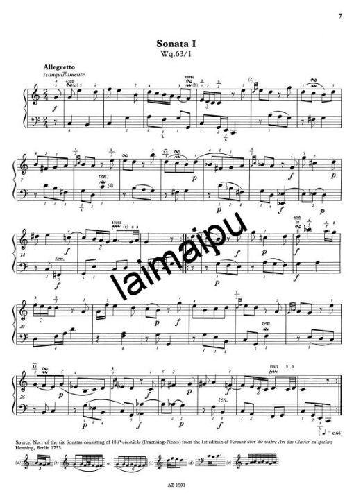 - Sonata I, Wq. 63/1