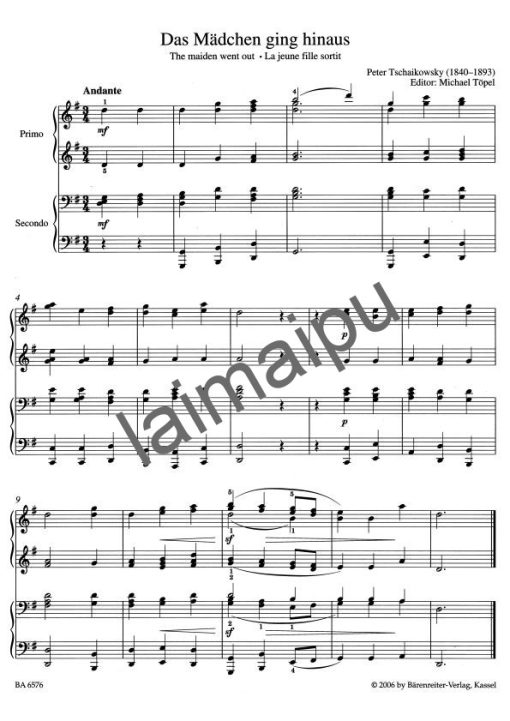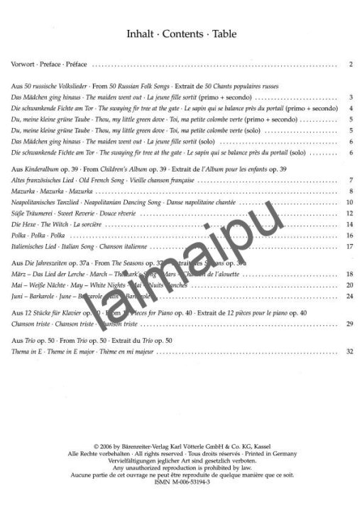 选自50首俄罗斯民歌、儿童相册 op. 39、四季 op. 37a、12首钢琴小品 op. 40以及 Trio op. 50里优美却简单的小品。
