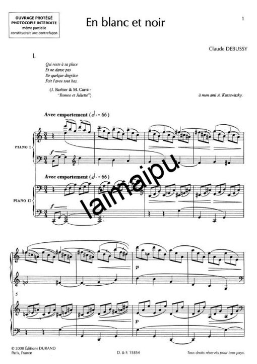 10级、专业级、单曲 (一本谱只有一个作品)、外文乐谱、示范、钢琴 (二台琴)、2人、双钢琴、古典音乐 (印象乐派)、Debussy, Claude | 德彪西、Durand