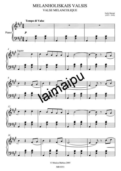 有示范、7级、钢琴、独奏、拉托维亚作曲家唯一传世的管弦乐曲忧伤华尔兹改编钢琴独奏、唯美优雅。