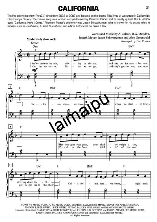 - California Composed by Joseph Meyer; Al Jolson; Jason Schwartzman; Alex Greenwald;Lyrics by Buddy DeSylva