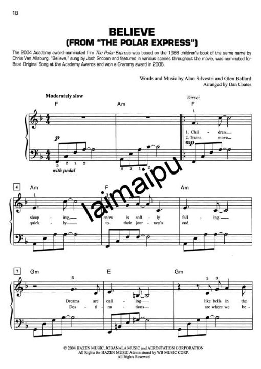 - Believe (From “The Polar Express”) Composed by Alan Silvestri; Glen Ballard