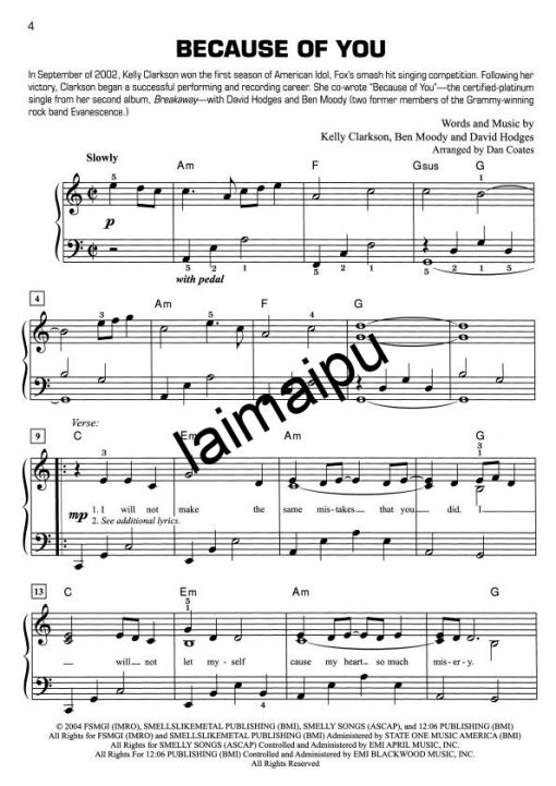 - Because Of You Composed by Ben Moody; David Hodges; Kelly Clarkson