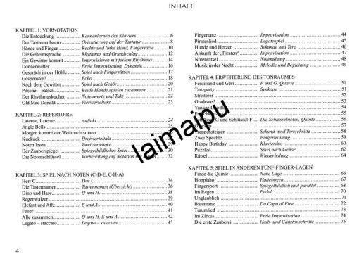 在第1卷中,孩子们学习用颜色、数字、动物等熟悉的元素来阅读音乐。通过大量的拨浪鼓、游戏和即兴演奏,教授初级音乐概念和钢琴技巧的基础知识。