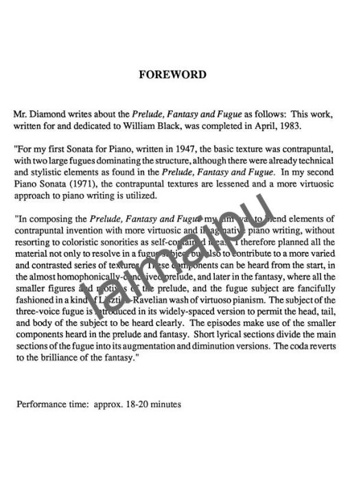 戴蒙: 前奏、幻想、与赋格 (Diamond, David: Prelude, Fantasy and Fugue) (1983)