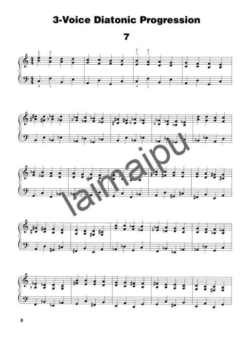 爵士和弦哈农是彼得-丹涅夫广受欢迎的哈农系列的第六本,提供了70种不同风格的基本练习,使初学者到专业爵士键盘手都能从中受益,所有练习都是基于哈农的必要研究。练习内容包括:编曲、大调和小调进行曲、半音阶和双音阶练习、变调和弦、渐进式复杂发声、五度音圈等。做这些练习可以保证在十二个调上都能流畅地演奏。包括建议的指法和练习技巧。