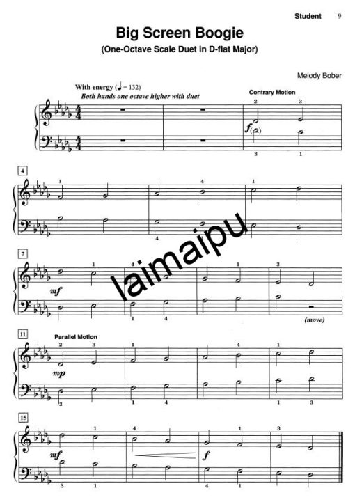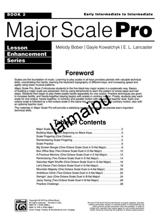 大调音阶专家第2册向学生系统地介绍了五种黑调大调音阶。介绍了建立大调音阶的基础知识,先用四音音阶学习全音和半音的模式,然后分手弹奏一个八度的音阶手。教师伴奏包括一个八度和两个八度的音阶。