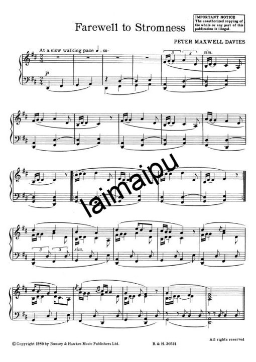 戴维斯: 再会斯特罗姆内斯与耶斯纳比 (Davies: Farewell to Stromness and Yesnaby Ground) (Boosey & Hawkes版)