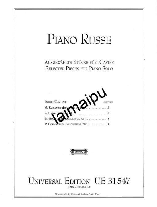 作曲家、作者、编者、译者 | Ilyich Tchaikovsky | 柴科夫斯基, Karganoff, Gennari | 卡尔加诺夫, Liadov, Anatol | 利亚多夫, Mussorgsky, Modest | 穆索尔斯基 |