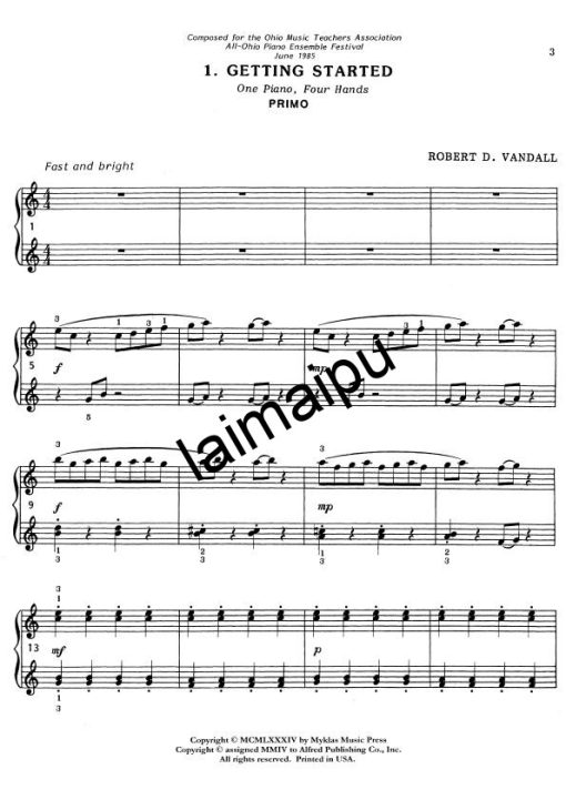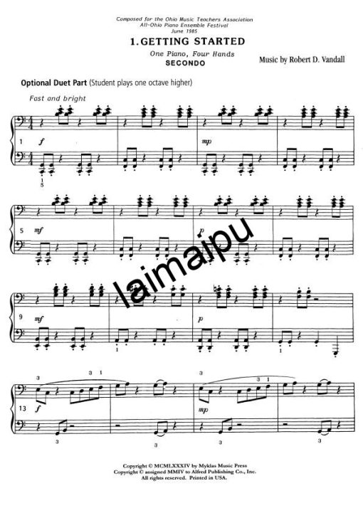 范达尔最受喜爱的二重奏之一。小手友好的曲目。三个乐章。Intermezzo中有表演者之间的手臂交叉动作。