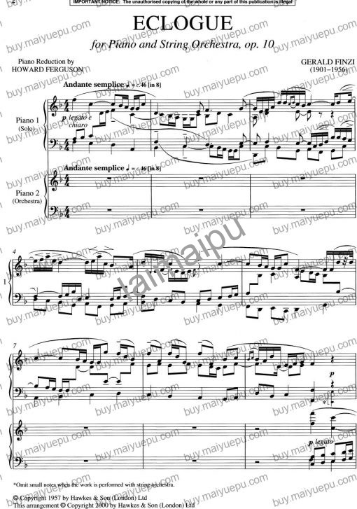 🔊🎹🎹 芬济: 为钢琴与弦乐团所作的田园诗曲 (双钢琴) (Finzi: Eclogue for Piano and String Orchestra, Op. 10)