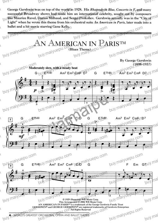 - An American in Paris (Blues Theme) Composed by George Gershwin