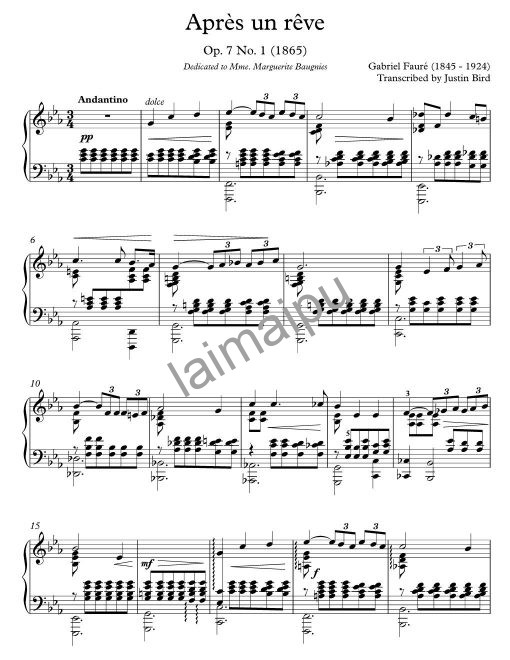 福雷: 梦后 (目前断版) (Faure: Apres un reve, Op. 7 No. 1)