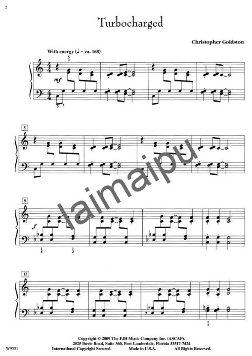 2级、3级、单曲 (一本谱只有一个作品)、外文乐谱、钢琴 (一台琴)、1人、独奏、难分风格教学小品、Goldston, Christopher | 歌德斯敦、The FJH Music Company Inc