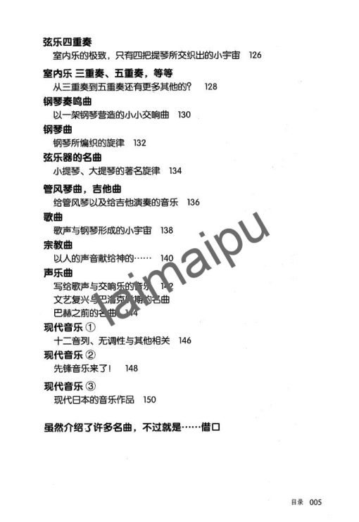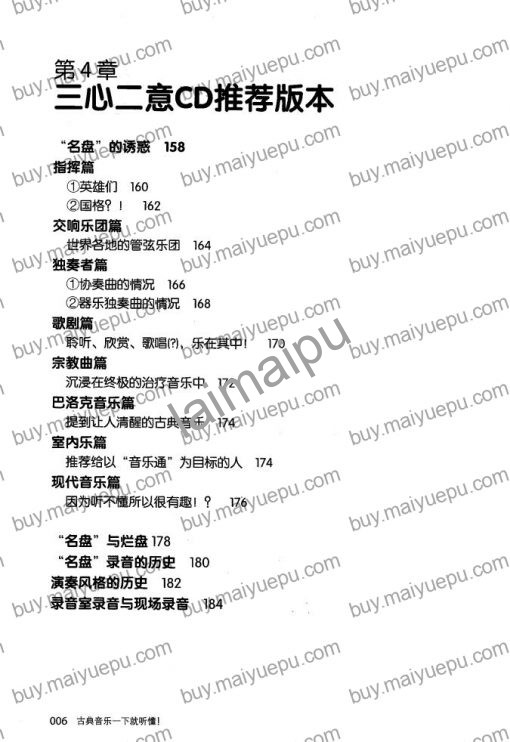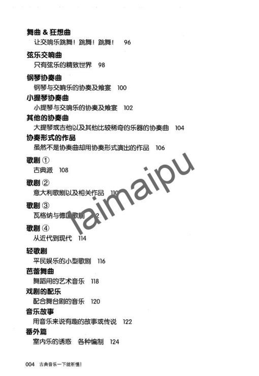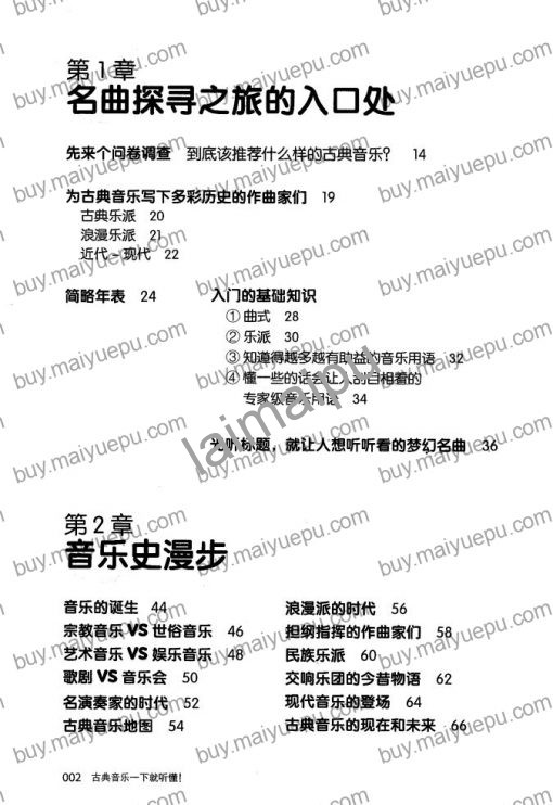 学完古典音乐的基础知识之后,吉松隆老师带你漫步音乐史,回顾了古典音乐各个流派的发展历程和风格特点,介绍了重要的作曲家及其代表曲目,同时讲解了交响曲、协奏曲、歌剧、室内乐、独奏等各类音乐体裁,带你轻松畅游古典音乐的海洋。此外,作曲家还推荐了必听的古典音乐名盘,聆听经典中的经典,给读者更多感性体验和“可听”空间。