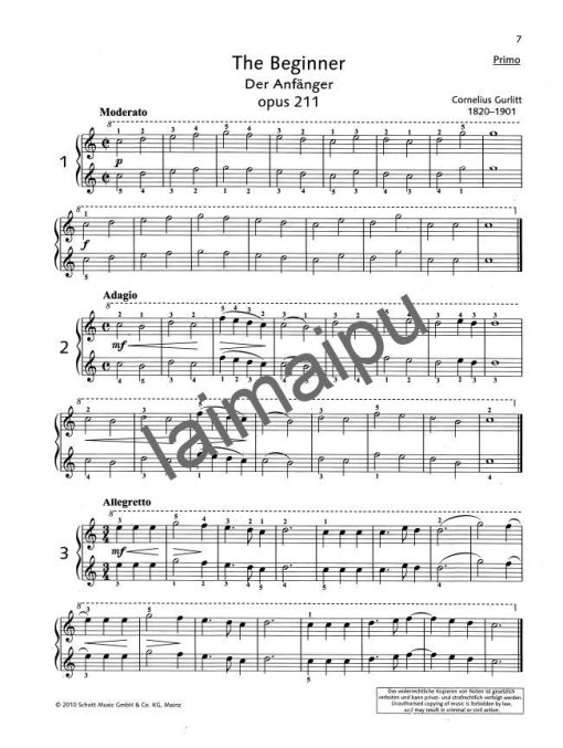 固利特: 给初学者的四手联弹 (Gurlitt: The Beginner for Piano Four Hands, Opus 211)