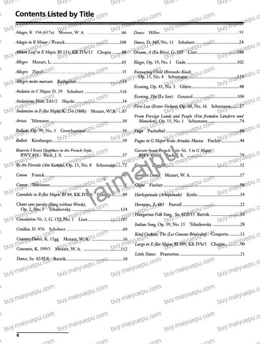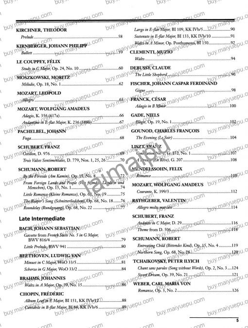 这本优秀的卷子收录了85首选曲,是初、中后期钢琴家必备的曲目。跨越巴洛克到现代时代,所有选曲都具有有趣的旋律和节奏,良好的设计和形式结构,以及卓越的审美价值。环状装订使本书平铺直叙,非常适合学习和演奏。