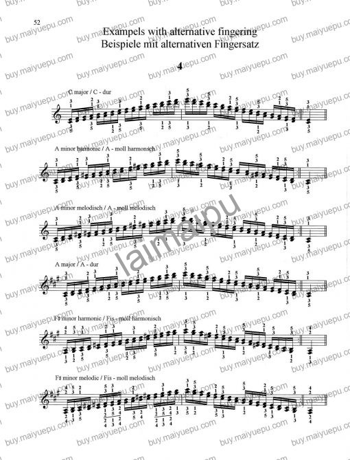 目前共有九册: 颤音(一)练习、颤音(二)练习曲、滑奏、聚合与开散、不换指重复音、双音: 三度(一)、双音: 三度(二)、换指重复音(一)、大跳。