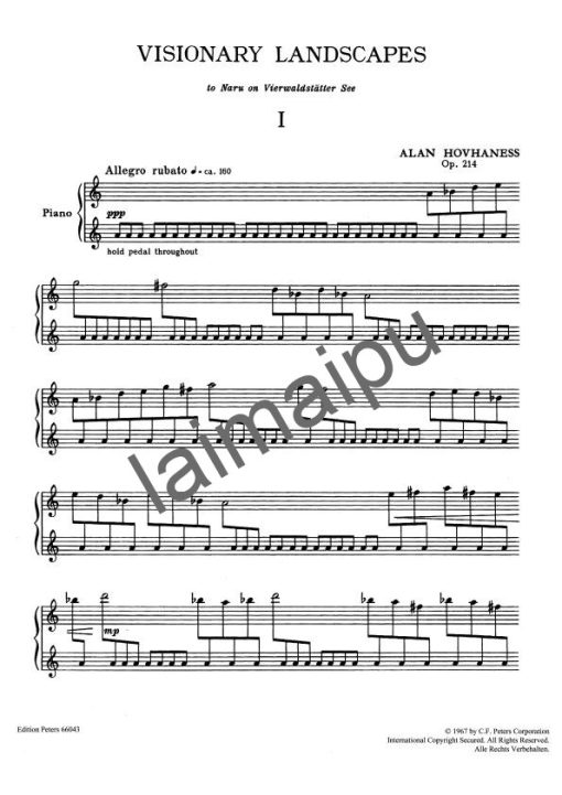 亚美尼亚-苏格兰裔美国作曲家霍夫哈尼斯(1911-2000)身居现代作曲家中产量前几位,光交响曲变有67首。他早期深受西贝柳斯影响,后曾受马尔蒂努指导,对于东方音乐有终其一生的热爱,也被人认为是早期有极简主义特色的作曲家之一。