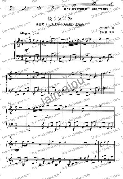 孩子们喜爱的钢琴曲 动画片主题曲