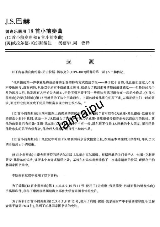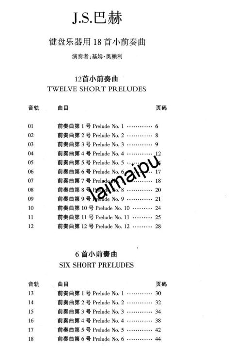 巴赫的18首小前奏曲适合练过巴赫初级钢琴曲集的学生作为进阶教材。正在练习巴赫创意曲的学生,选择搭配练习也是很好的。