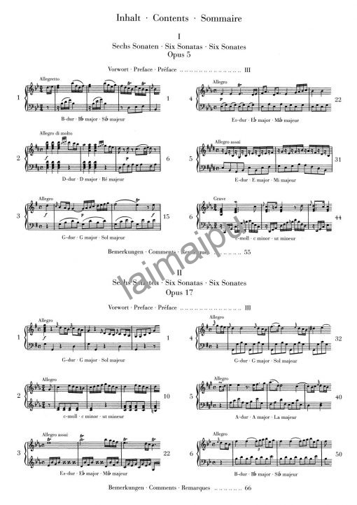 - Sonata from op. 17, B flat major, op. 17,6 (Piano solo)