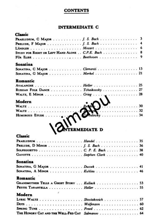 适合全国钢琴教师协会试听的钢琴曲集。由利奥-波多尔斯基精选和编辑,这些熟悉的作品在编辑和指法上都有特点,有助于学生达到表现力和技术上的轻松。吉尔德经典曲目分为三个级别,初级、中级、预备级(高级)。每个级别又分为四类。古典(包括巴洛克)、奏鸣曲(奏鸣曲)、浪漫主义、现代。到了这个级别,学生已经可以学习最简单的古典乐了。但这些书中的经典作品不仅有通常比较容易的巴赫和莫扎特,还包括科雷利、普塞尔、克里格等作曲家。除了贝多芬、库劳和克莱门蒂的奏鸣曲外,还有哈斯林格、梅克尔和萨卢特林斯卡娅的例子。虽然大多数浪漫派的作品都是耳熟能详的(舒曼、柴可夫斯基等),但也有一些新的、但不极端的当代作品。